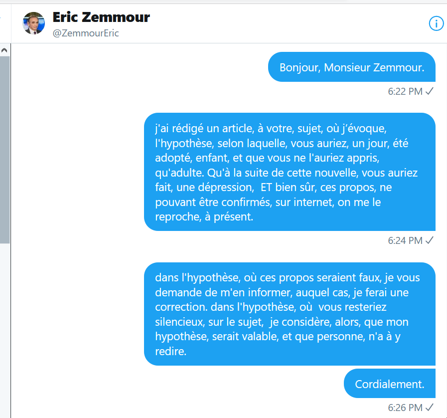 Il y a quelques jours, un documentaire sur zemmour, assez objectif, plus que lui, ne l'a jamais été, ce qui n'est pas s compliqué, je dois dire, montrait, la face cachée, de zemmour.